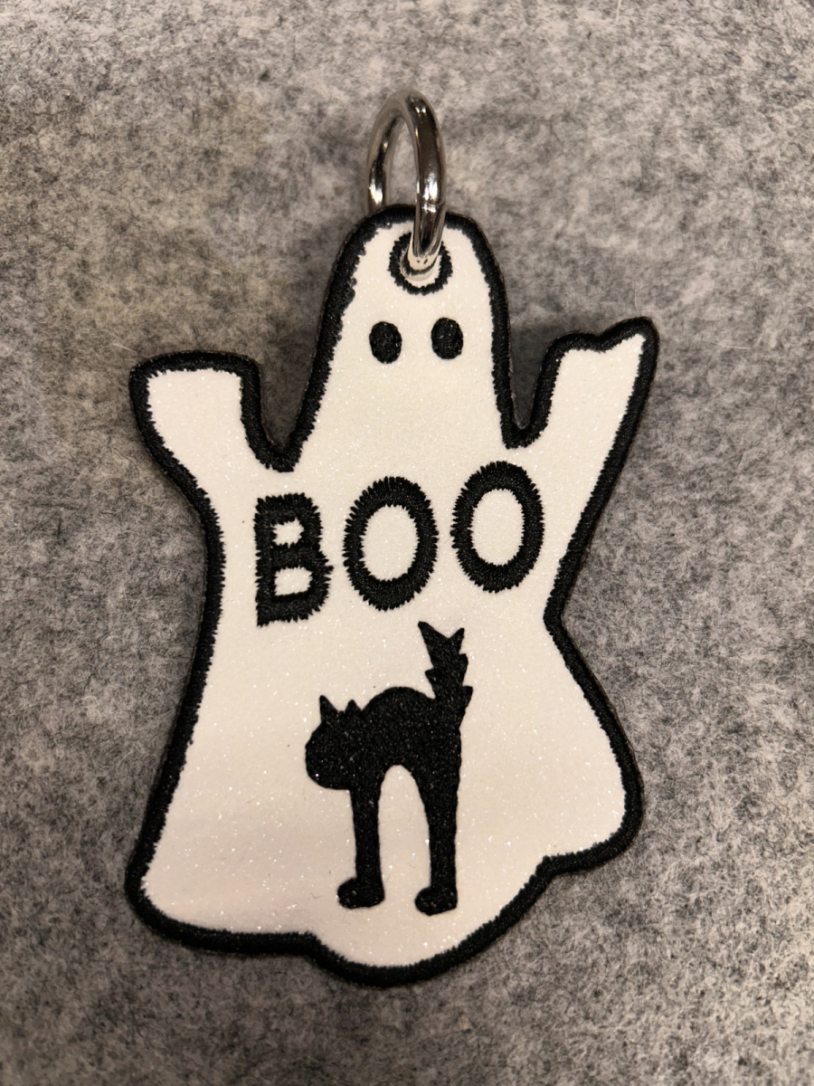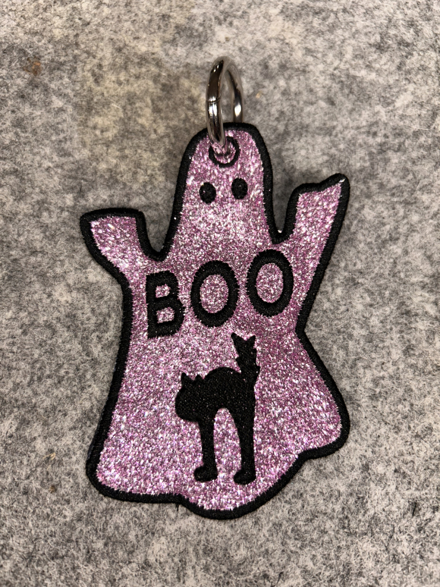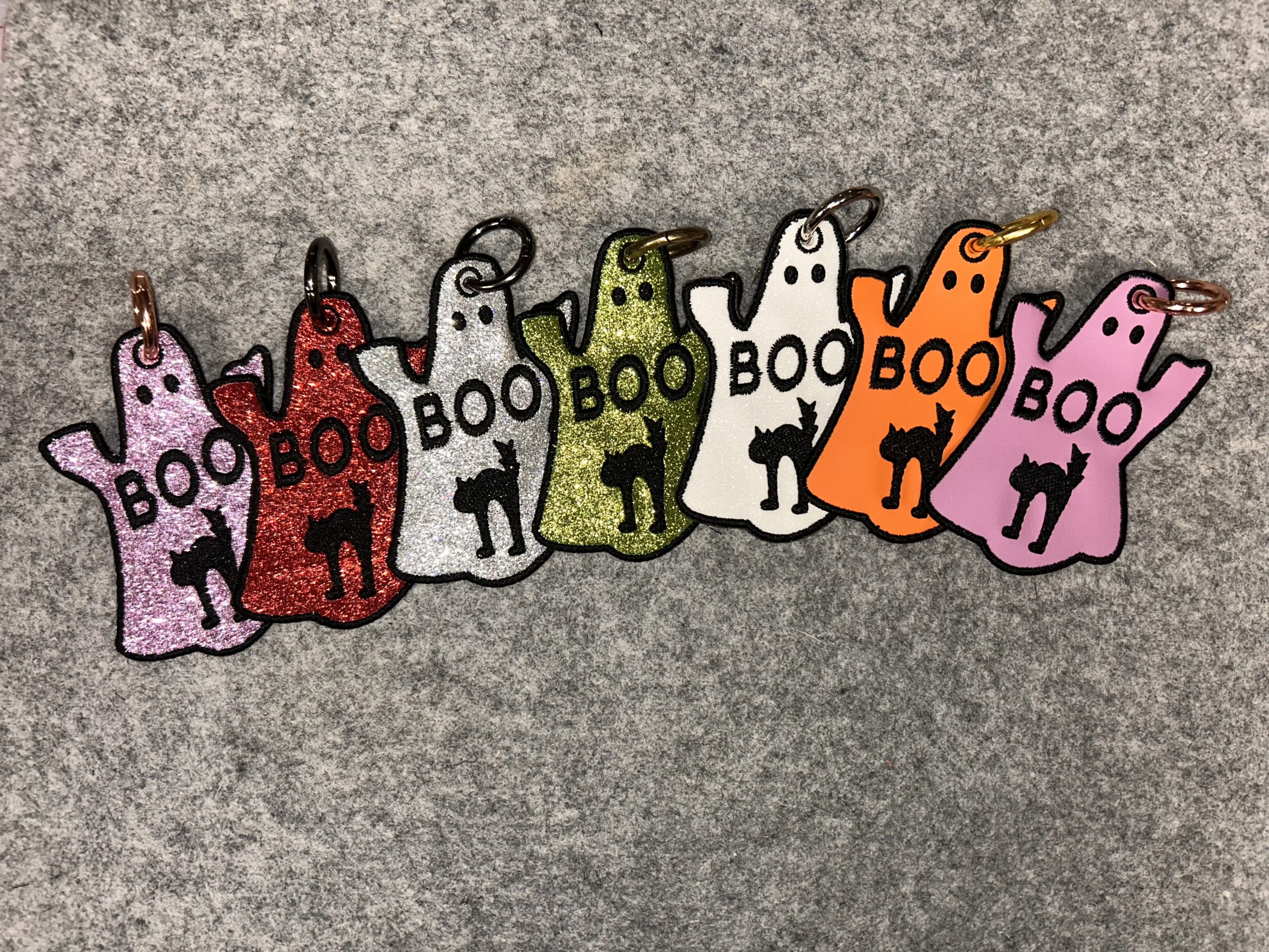Just in time for Halloween season, this cute little ghost with his Boo cat familiar! Use as a key fob or bag tag. Comes on a spring ring in brass. silver, gunmetal or rose gold. Note in your order if you have a spring ring color preference, otherwise it will ship in surprise mode. Limited run, so get your’s quick!