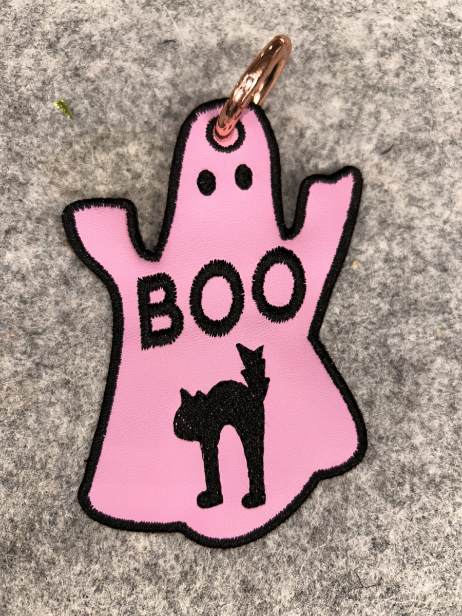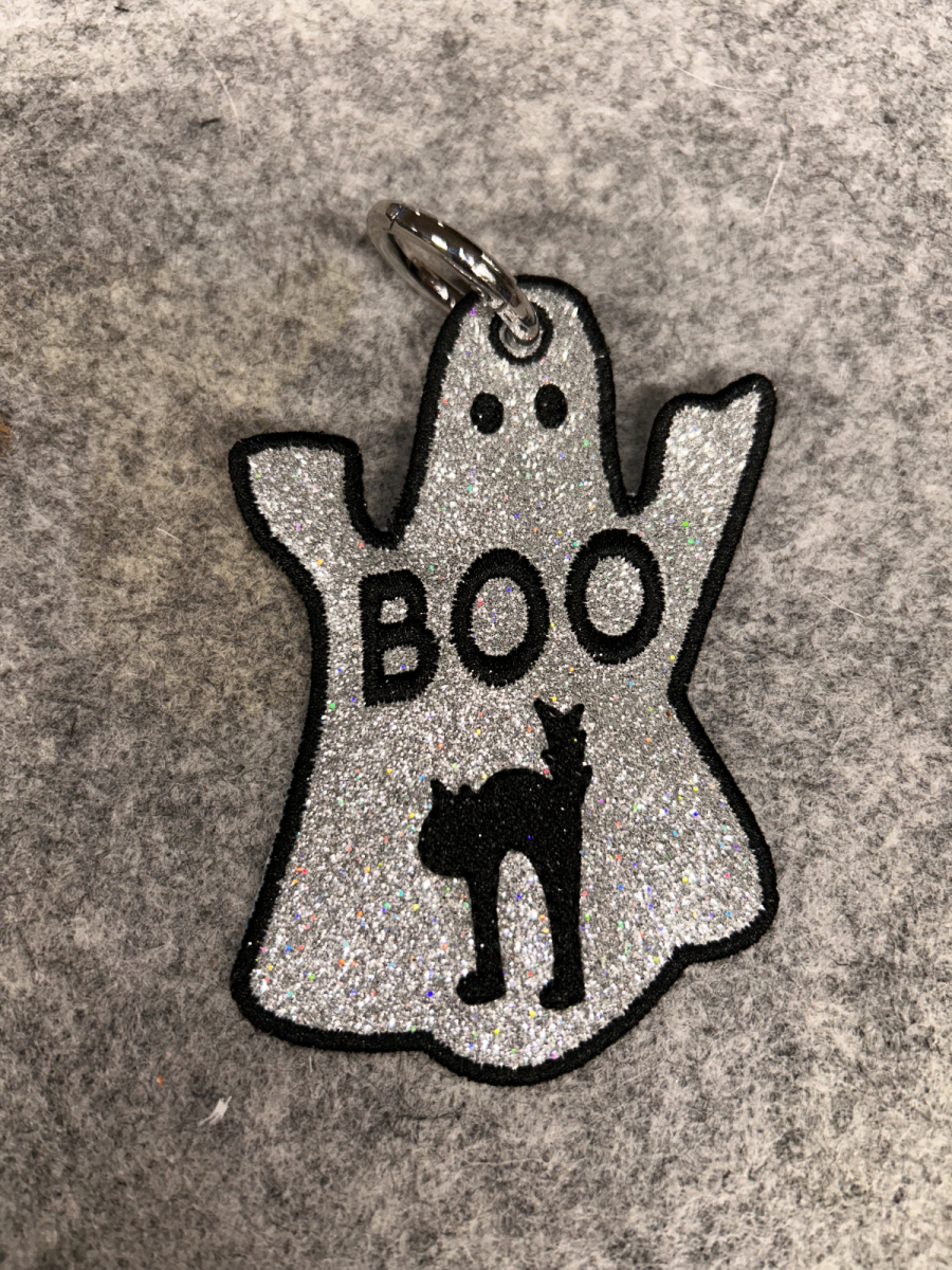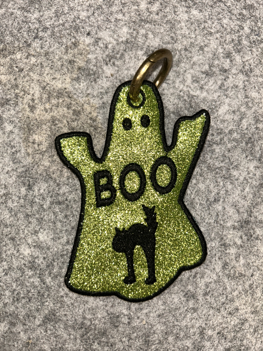 Just in time for Halloween season, this cute little ghost with his Boo cat familiar! Use as a key fob or bag tag. Comes on a spring ring in brass. silver, gunmetal or rose gold. Note in your order if you have a spring ring color preference, otherwise it will ship in surprise mode. Limited run, so get your’s quick!